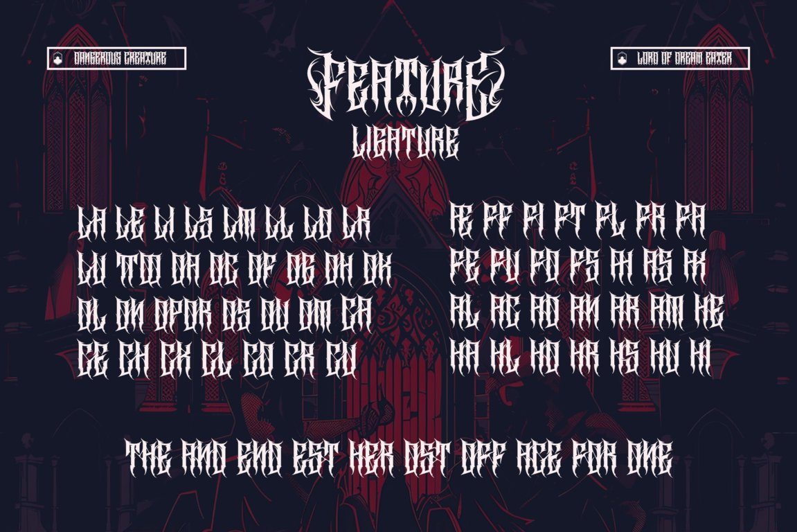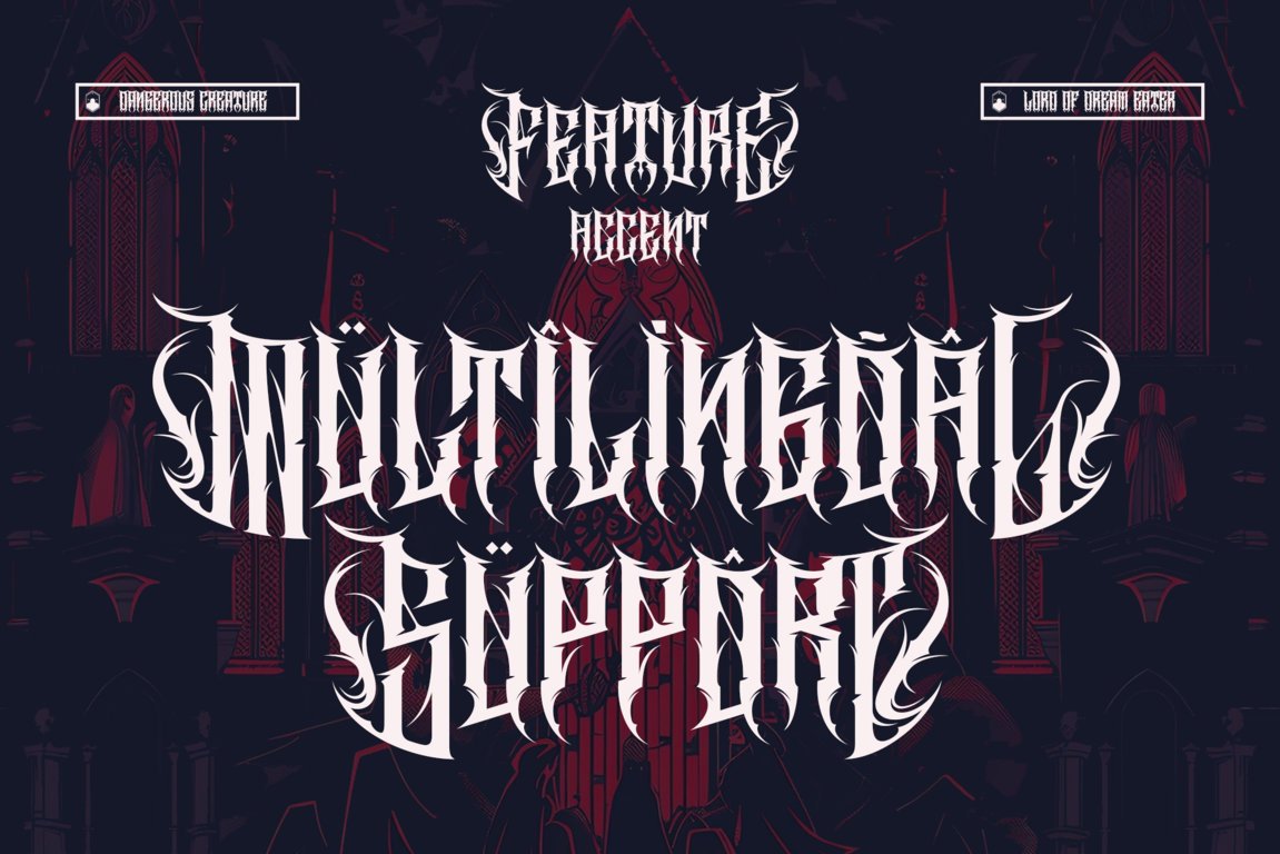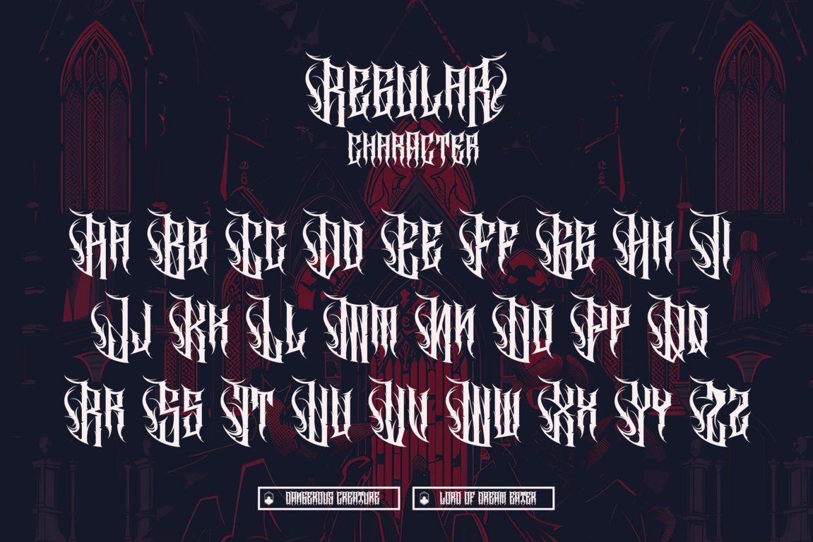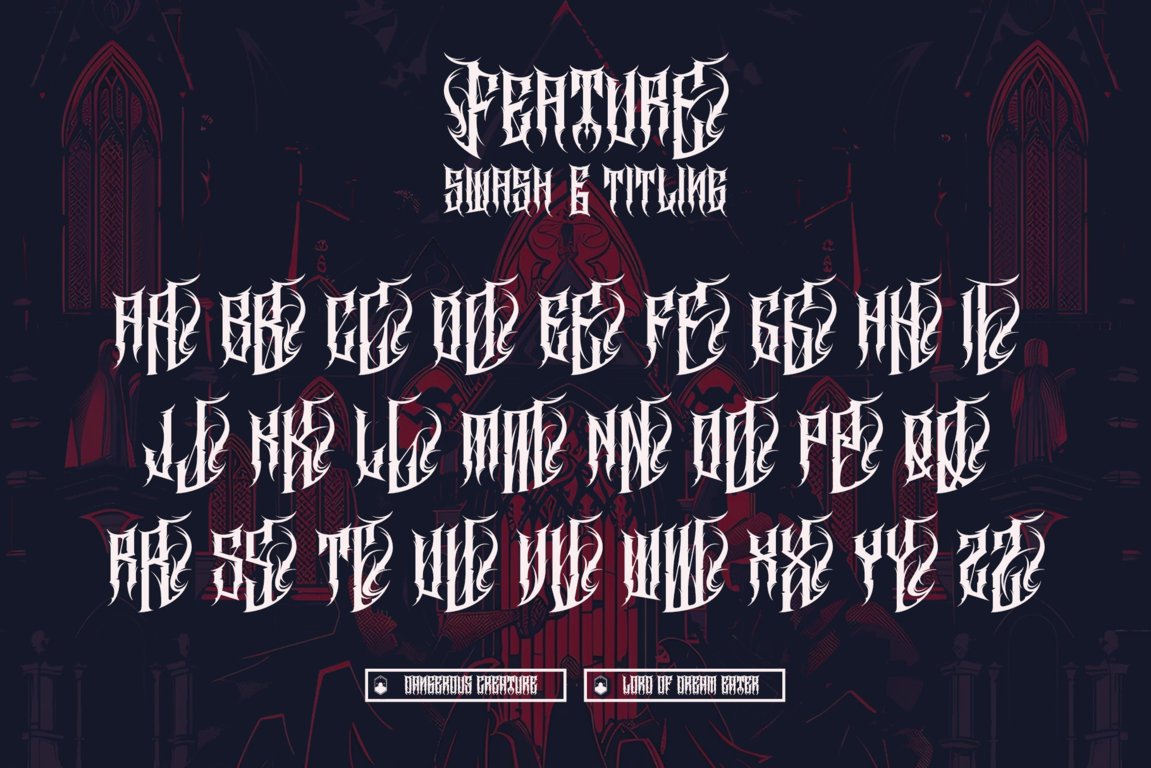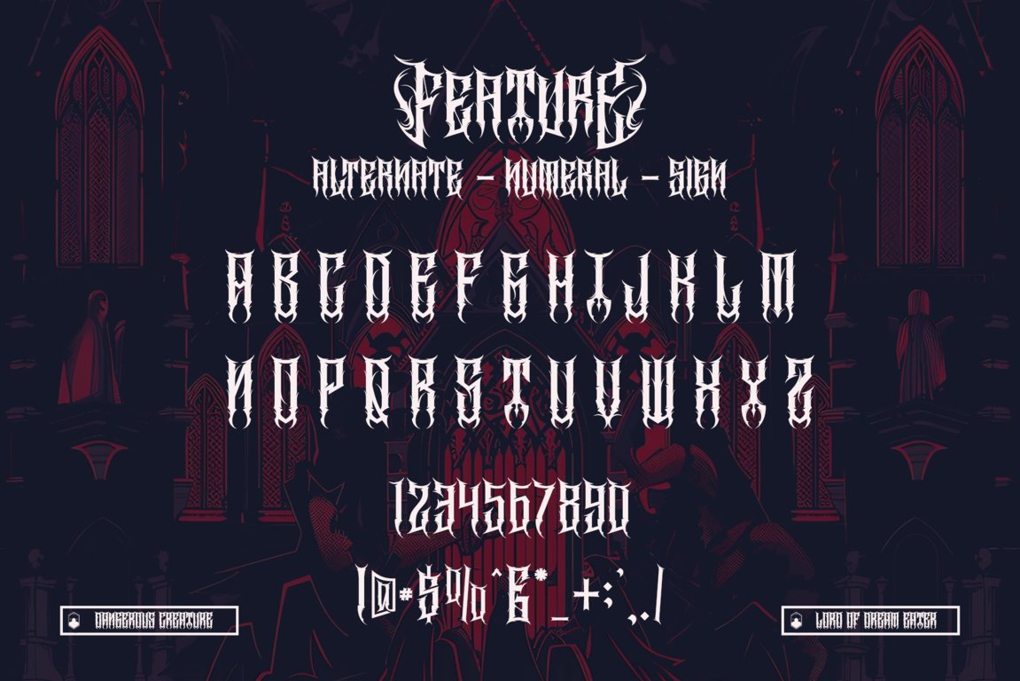 Designed for dark fantasy titles, metal band logos, album covers, game branding, tattoo lettering, posters, and cinematic visuals, Cathedrave transforms typography into symbols of power and reverence. Every letter radiates intensity and solemn character, making it ideal for designs that demand dominance, atmosphere, and historical weight. Fully PUA encoded and rich in OpenType features, Cathedrave gives you complete control to craft dramatic, authoritative, and unforgettable visual identities.
