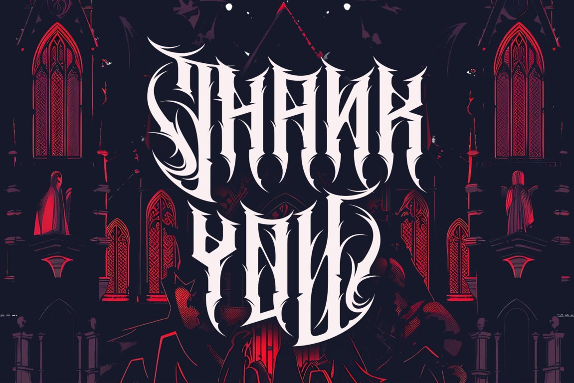 Enter the realm of sacred darkness with Cathedrave, an extreme gothic blackletter font inspired by towering cathedrals, ancient stone engravings, and the mysticism of forbidden manuscripts. Defined by sharp, dramatic strokes, powerful symmetry, and heavy contrast, Cathedrave delivers a bold visual presence that feels carved in stone rather than written with ink. Its structure reflects medieval authority, ritual strength, and architectural precision rooted in Gothic tradition.
