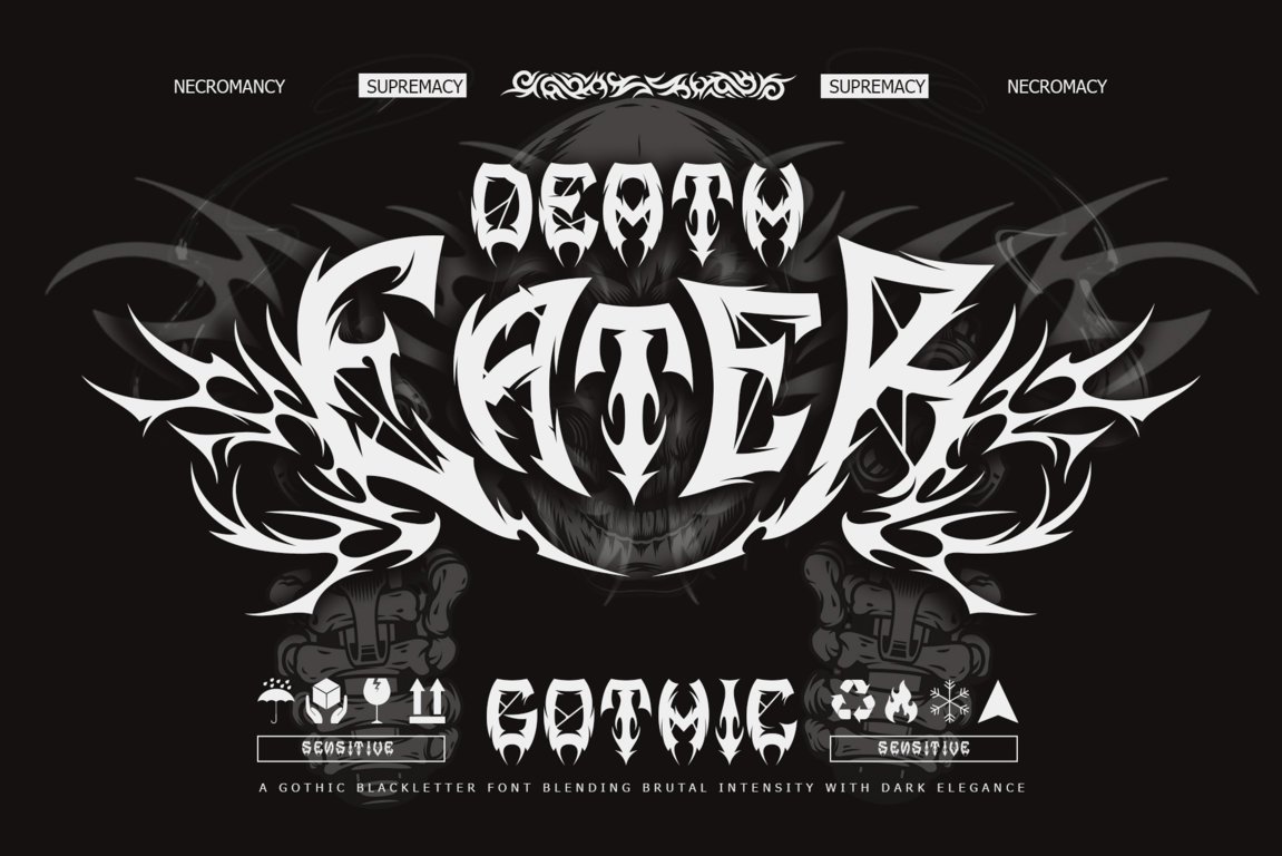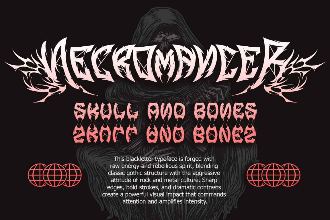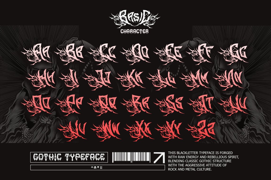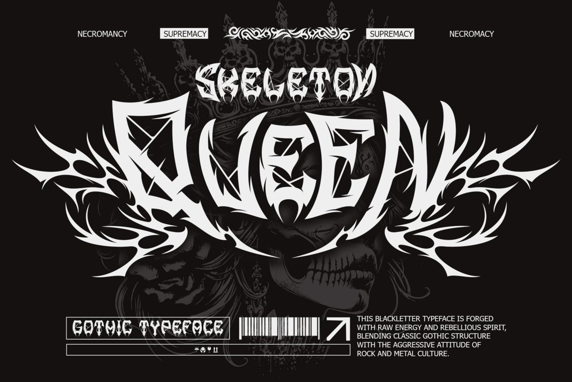 Enter the dominion of darkness with Demon Crown, an extreme gothic blackletter font forged from ritual, power, and unholy authority. Defined by razor-sharp strokes, aggressive curves, and commanding symmetry, Demon Crown delivers a dominant visual presence that feels carved in iron rather than written in ink. Inspired by occult symbolism, cathedral shadows, and the raw intensity of metal culture, this font transforms typography into a force of domination and chaos.